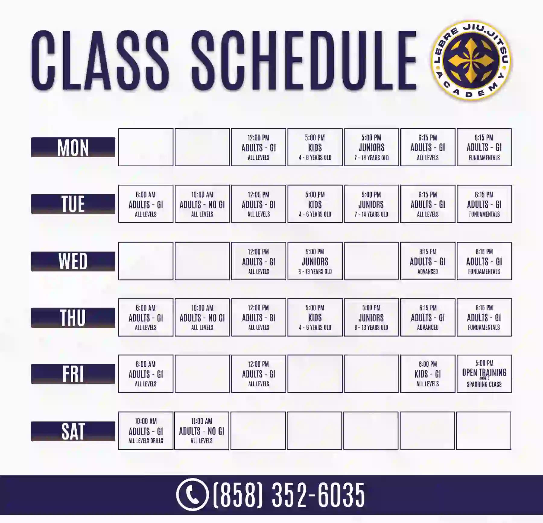 Stay on track with your training at Lebre Jiu-Jitsu. Our schedule is designed to offer classes for all ages and skill levels, providing flexibility to fit your routine. Whether you’re just starting or preparing for competition, you’ll find the right class to support your goals.
